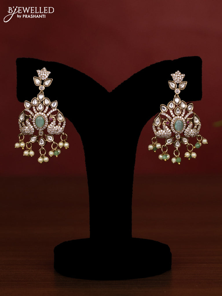 Beaded multilayer baby pink necklace peacock design with kundan & cz stones and pearl & beads hanging in victorian finish