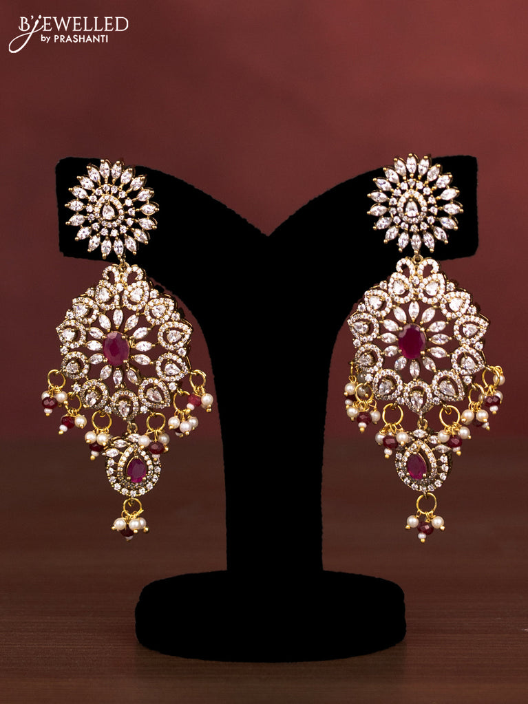 Beaded multilayer maroon necklace peacock design with ruby kundan & cz stones and pearl & beads hanging in victorian finish