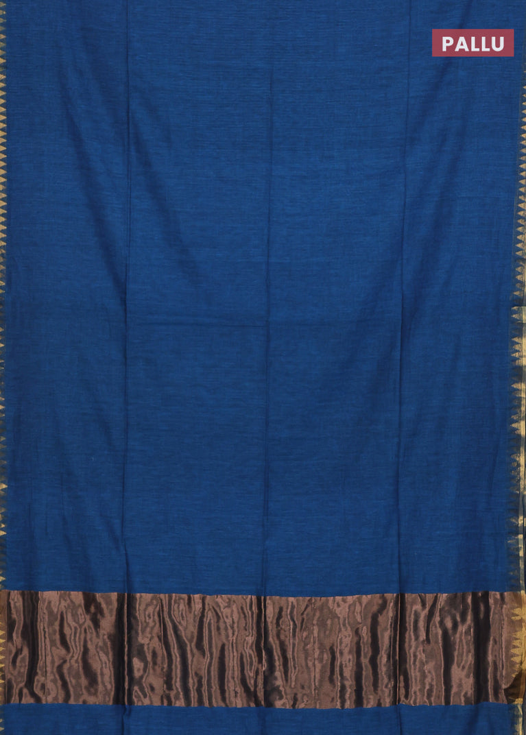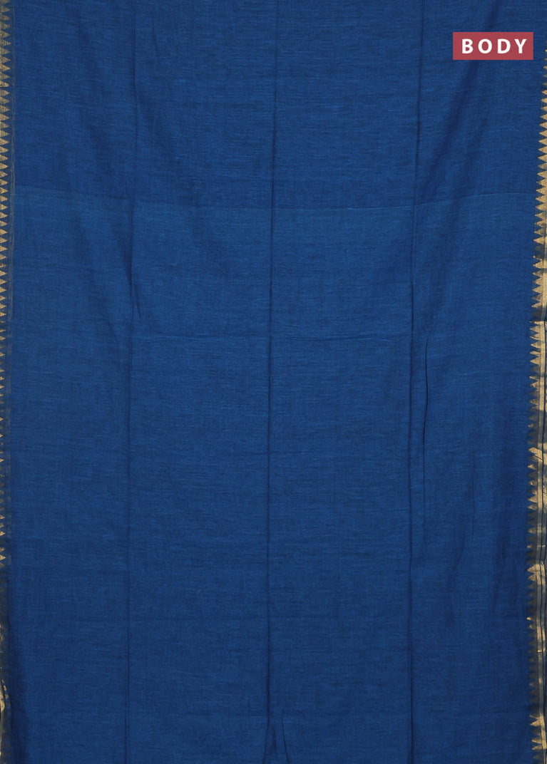 Bengal soft cotton saree cs blue and blue with plain body and zari woven border