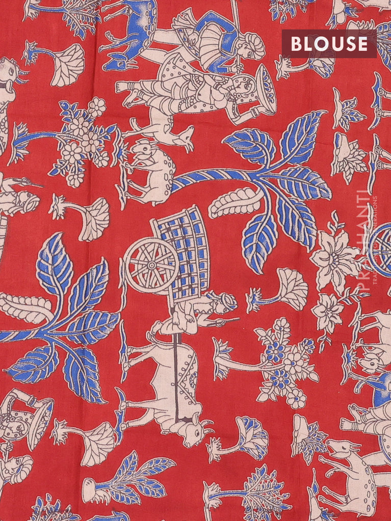 Bengal soft cotton saree blue and red with plain body and zari woven border