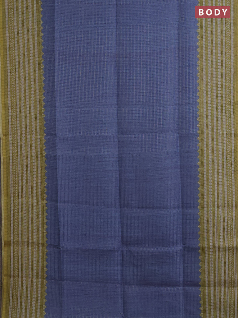 Chappa saree dark mustard and blue with allover small zari checked pattern & prints and piping border