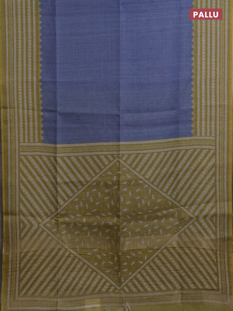 Chappa saree blue and mehendi green with allover small zari checked pattern and pichwai printed pallu