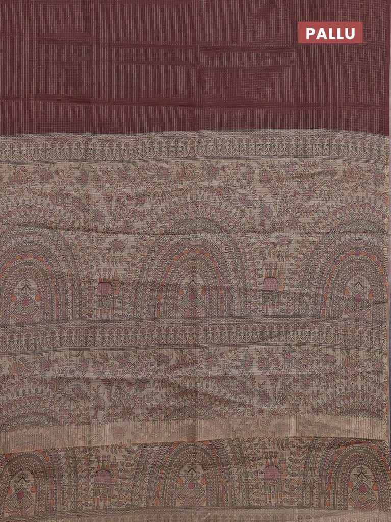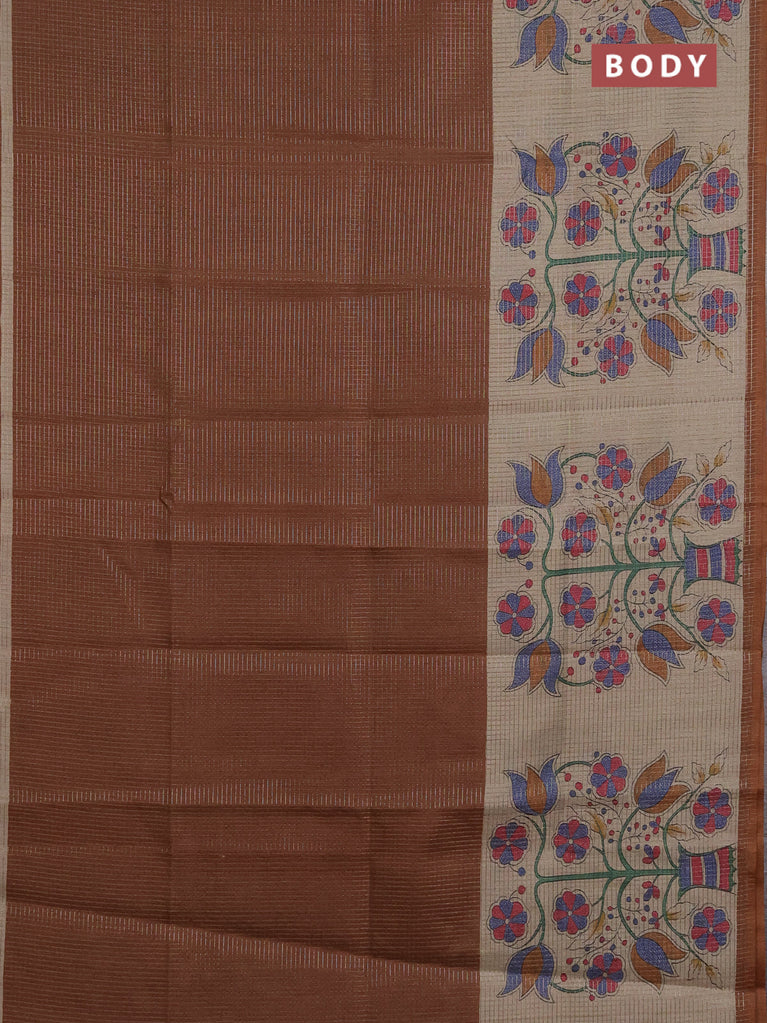 Chappa saree brown and beige with allover small zari checked pattern and madhubani printed pallu