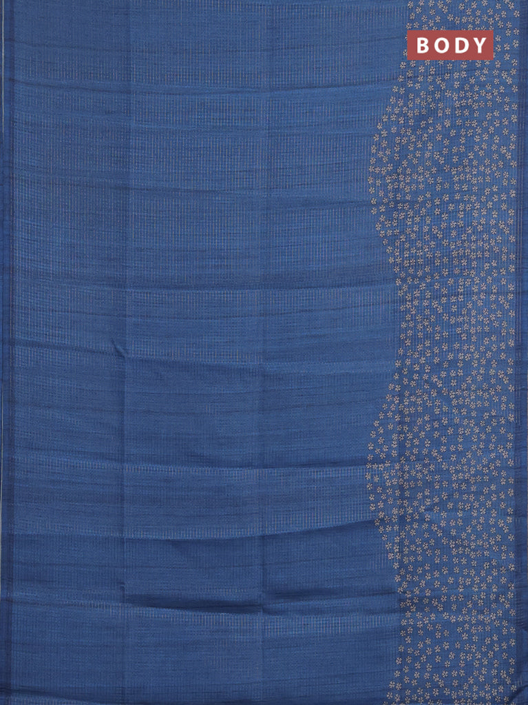 Chappa saree dark blue and beige with allover small zari checked pattern and floral digital printed pallu