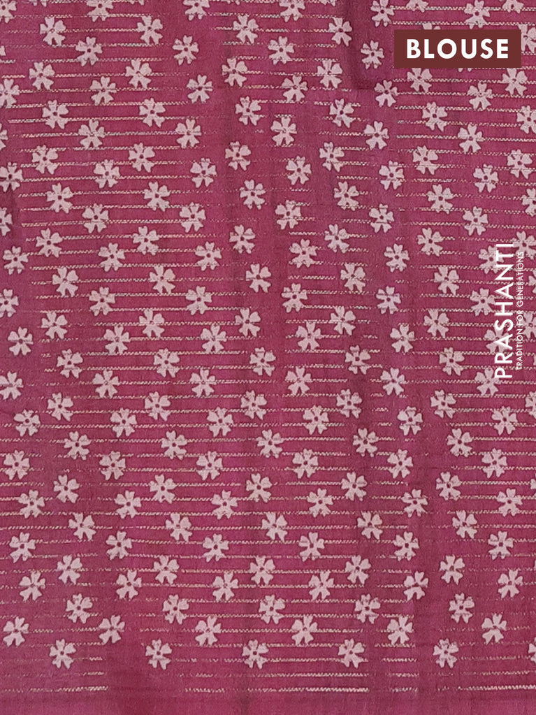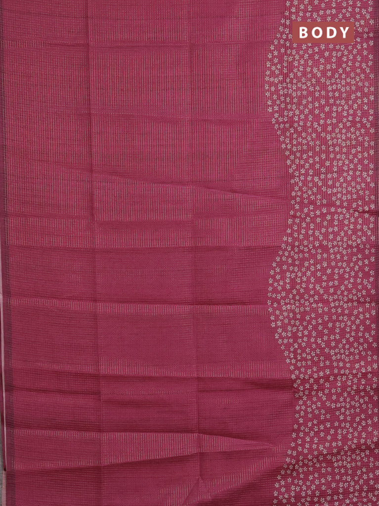 Chappa saree dark magenta pink with allover small zari checked pattern and floral digital printed pallu