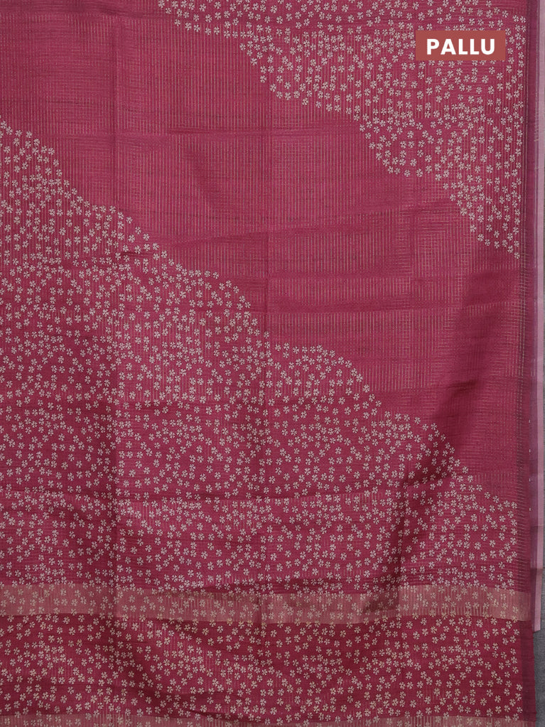 Chappa saree dark magenta pink and beige with allover small zari checked pattern and floral digital printed pallu