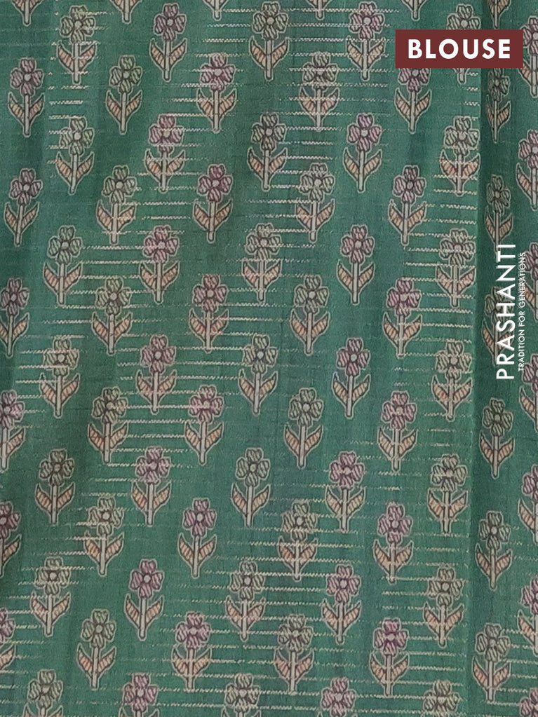Chappa saree green and brown with allover small zari checked pattern & prints and piping border