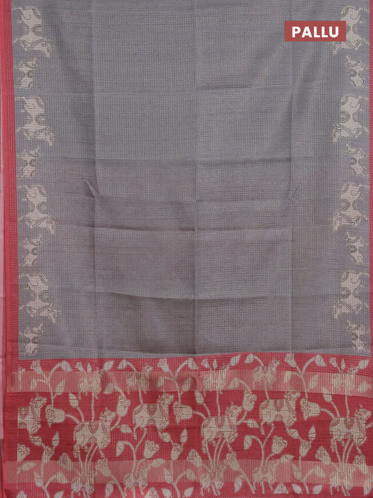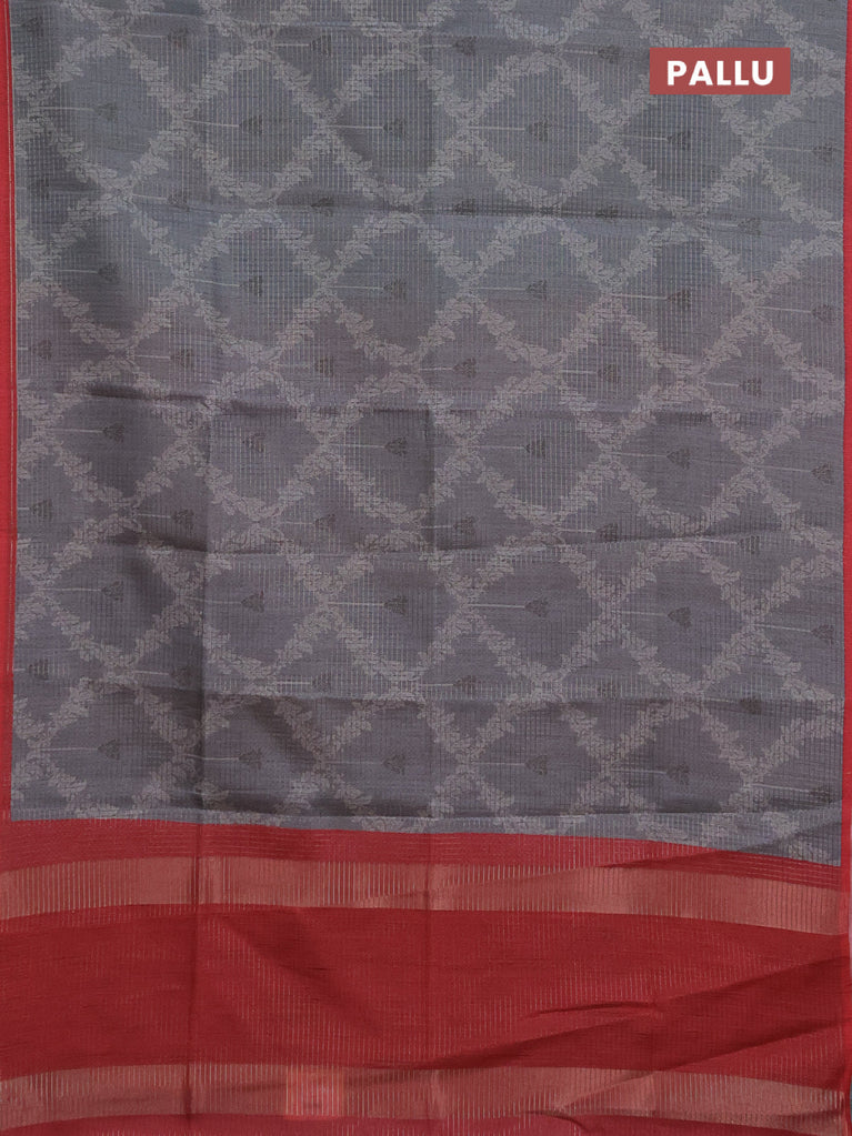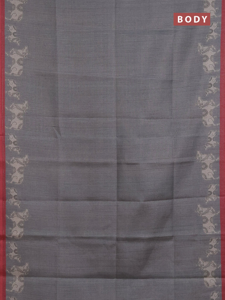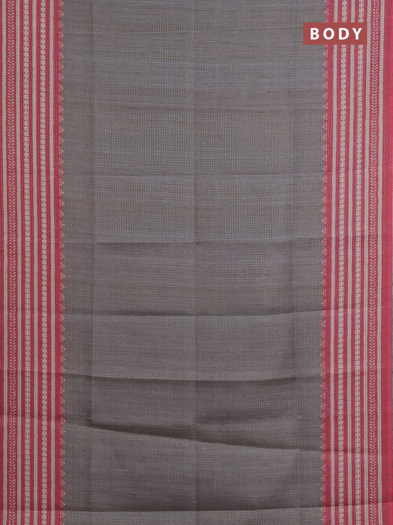 Chappa saree grey and maroon with allover small zari checked pattern & prints and piping border