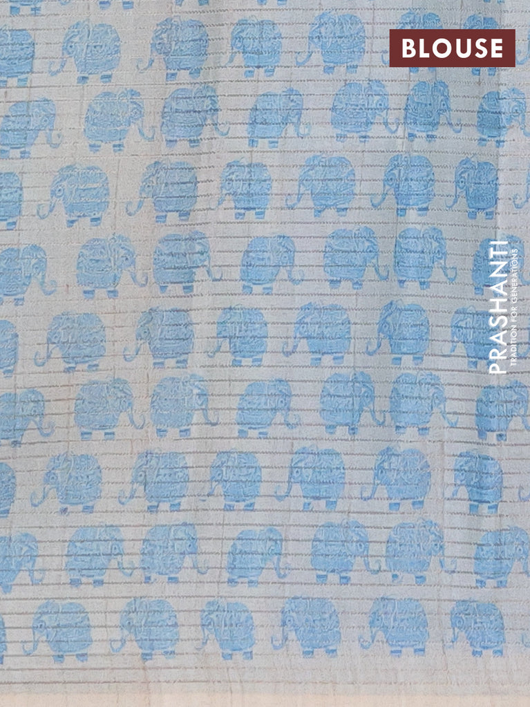 Chappa saree light blue and grey with allover small zari checked pattern and elephant butta prints