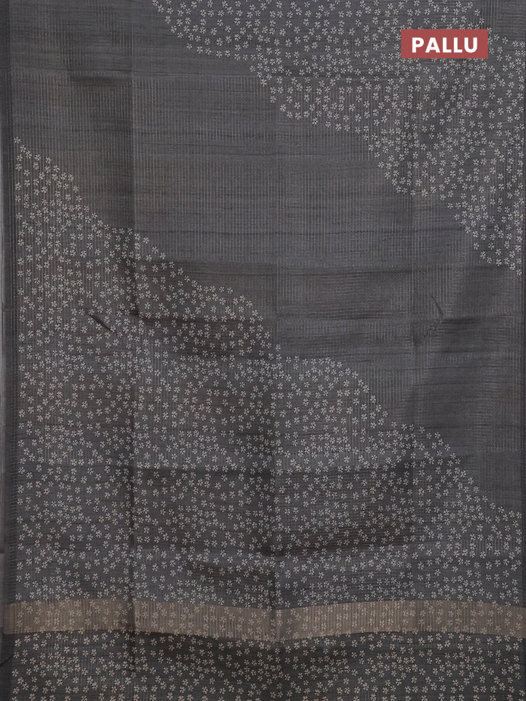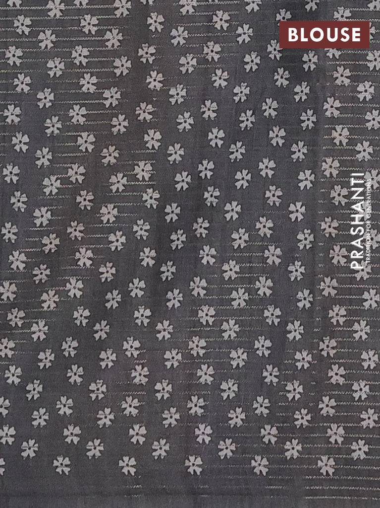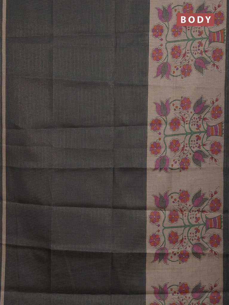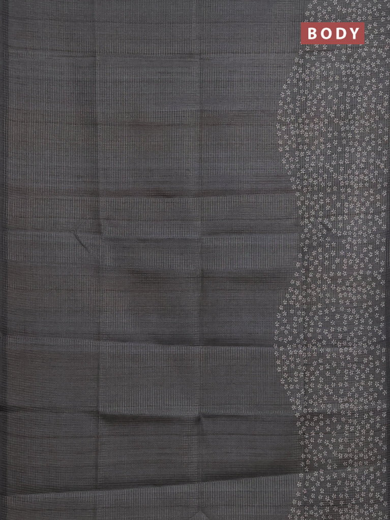 Chappa saree grey and black with allover small zari checked pattern & floral digital prints and ganga jamuna border