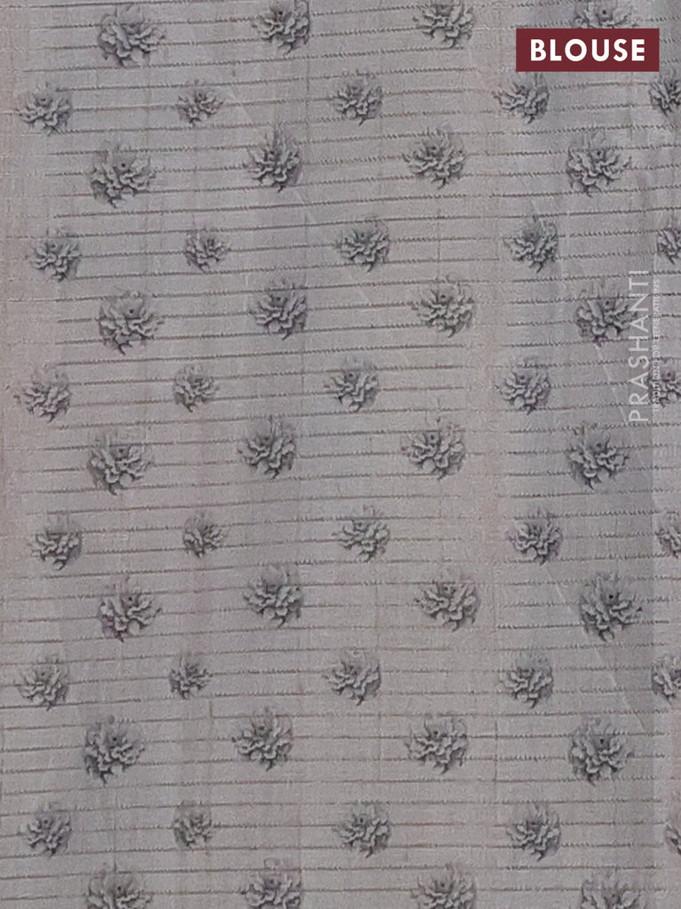 Chappa saree grey with allover small zari checked pattern and floral digital printed pallu