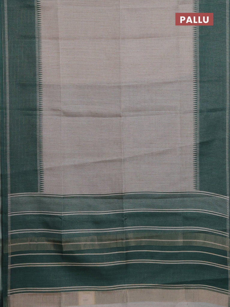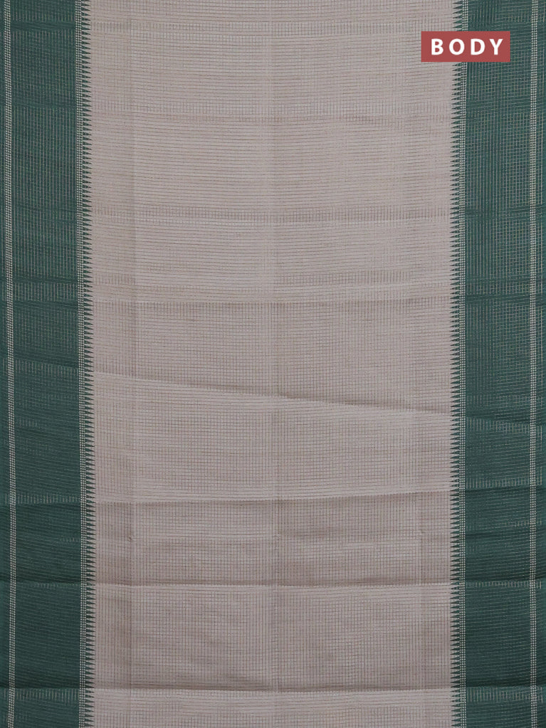 Chappa saree grey and green with allover small zari checked pattern and temple design zari woven border