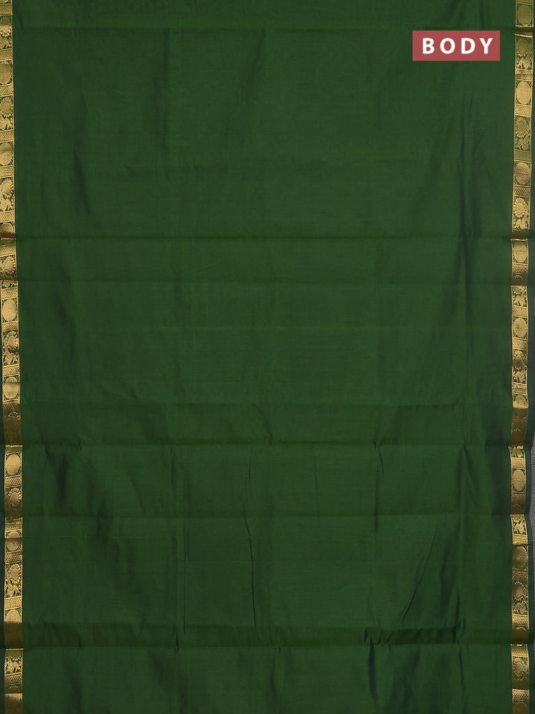 10 yards Poly cotton saree green and maroon with plain body and rettapet zari woven border