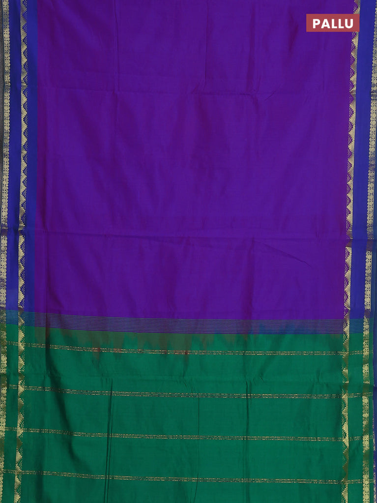 10 yards Poly cotton saree green and purple with plain body and zari woven border
