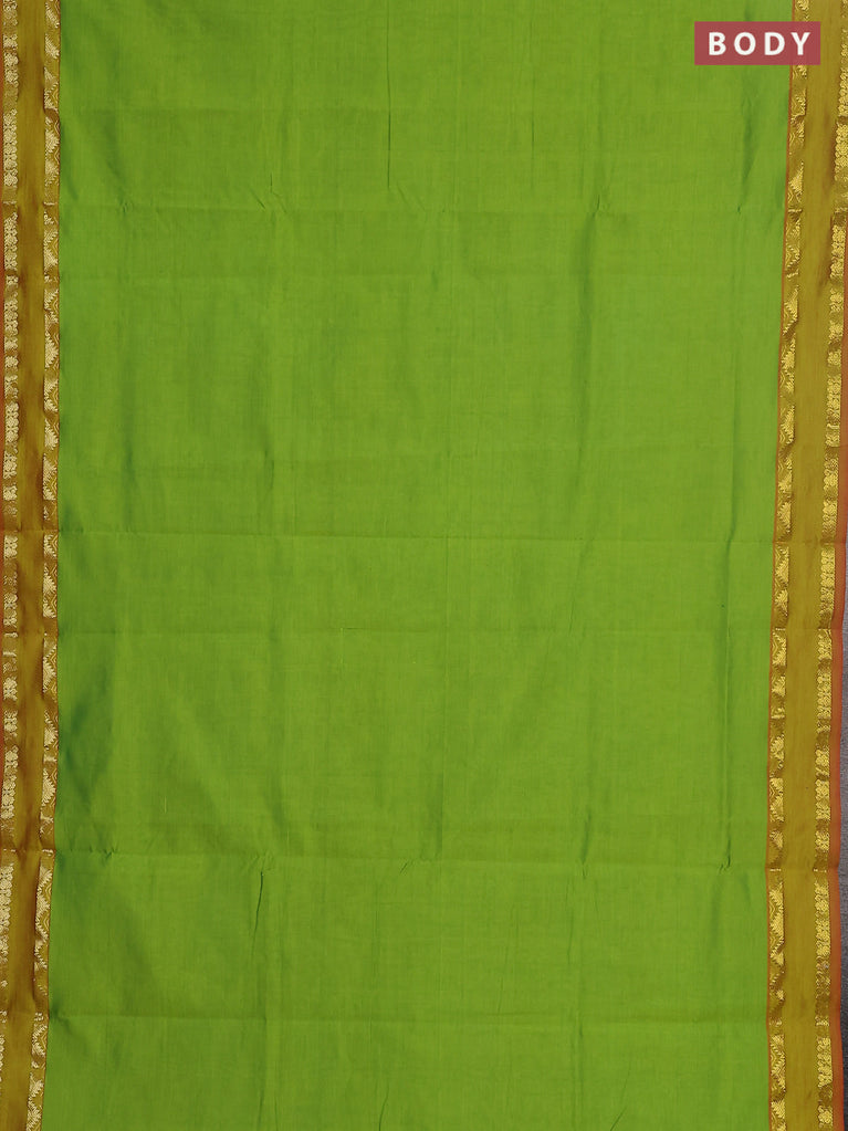 10 yards Poly cotton saree mehendi green and green with plain body and zari woven border