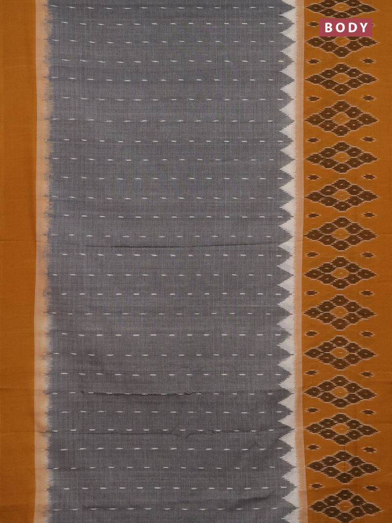 Ikat cotton saree grey and mustard yellow with allover ikat butta weaves and simple border