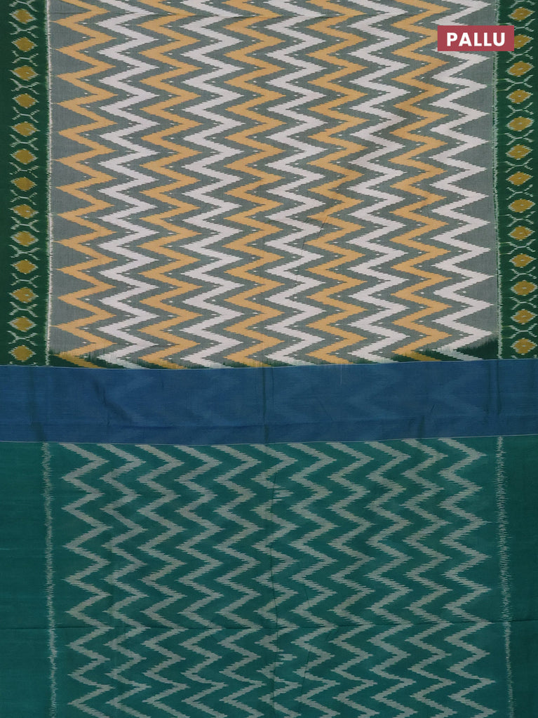 Ikat cotton saree grey and green with allover ikat butta weaves and ikat style border