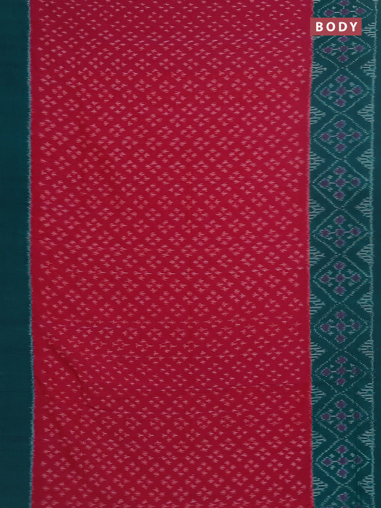 Ikat cotton saree peacock green and red with allover ikat weaves and simple border
