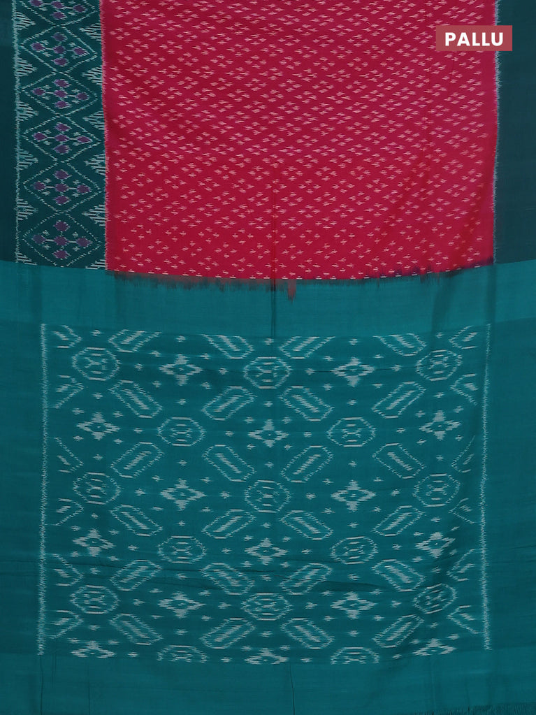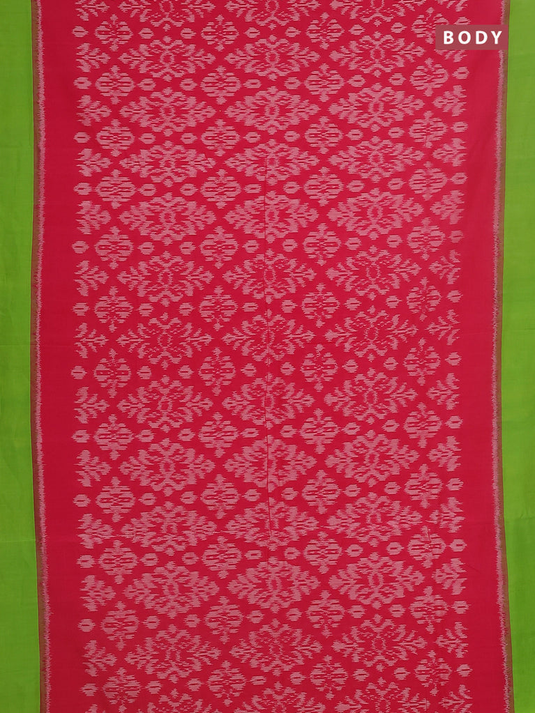Ikat cotton saree peacock green and pink with allover ikat weaves and simple border