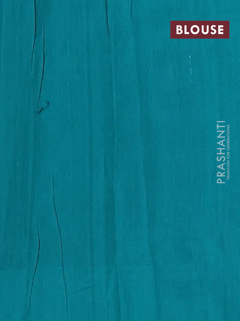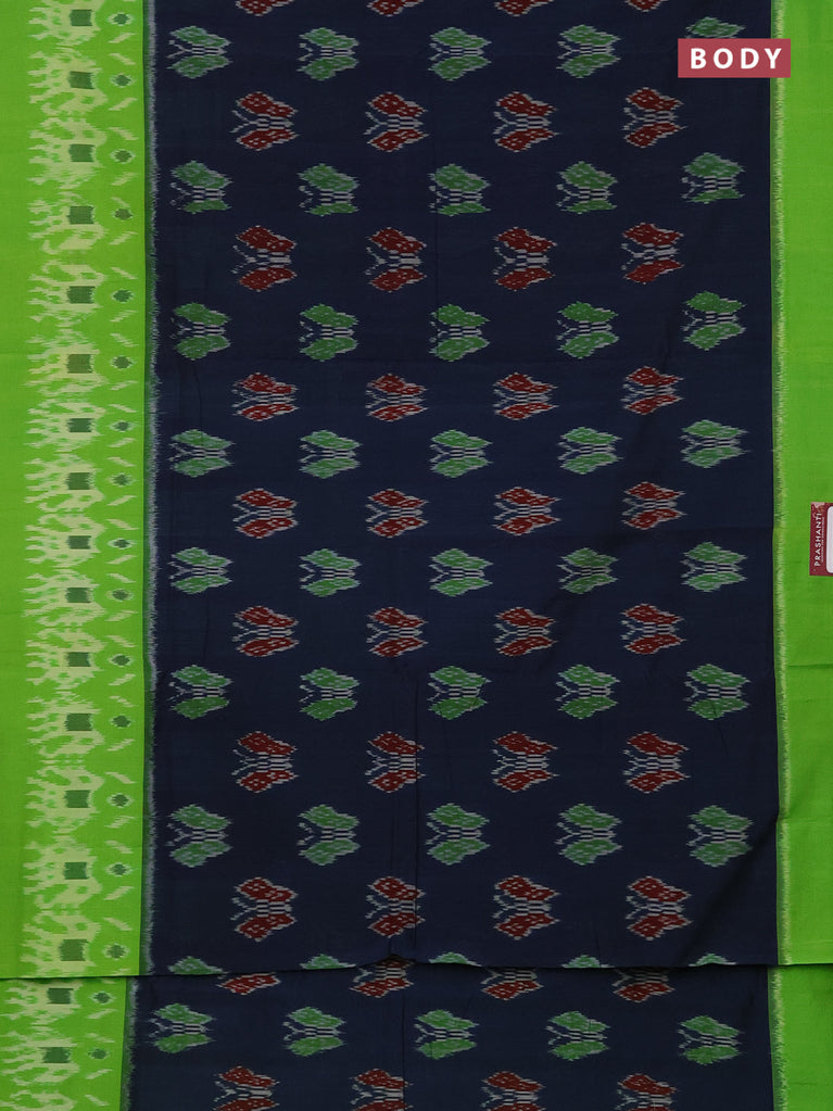 Ikat cotton saree peacock blue and light green with allover ikat butta weaves and simple border