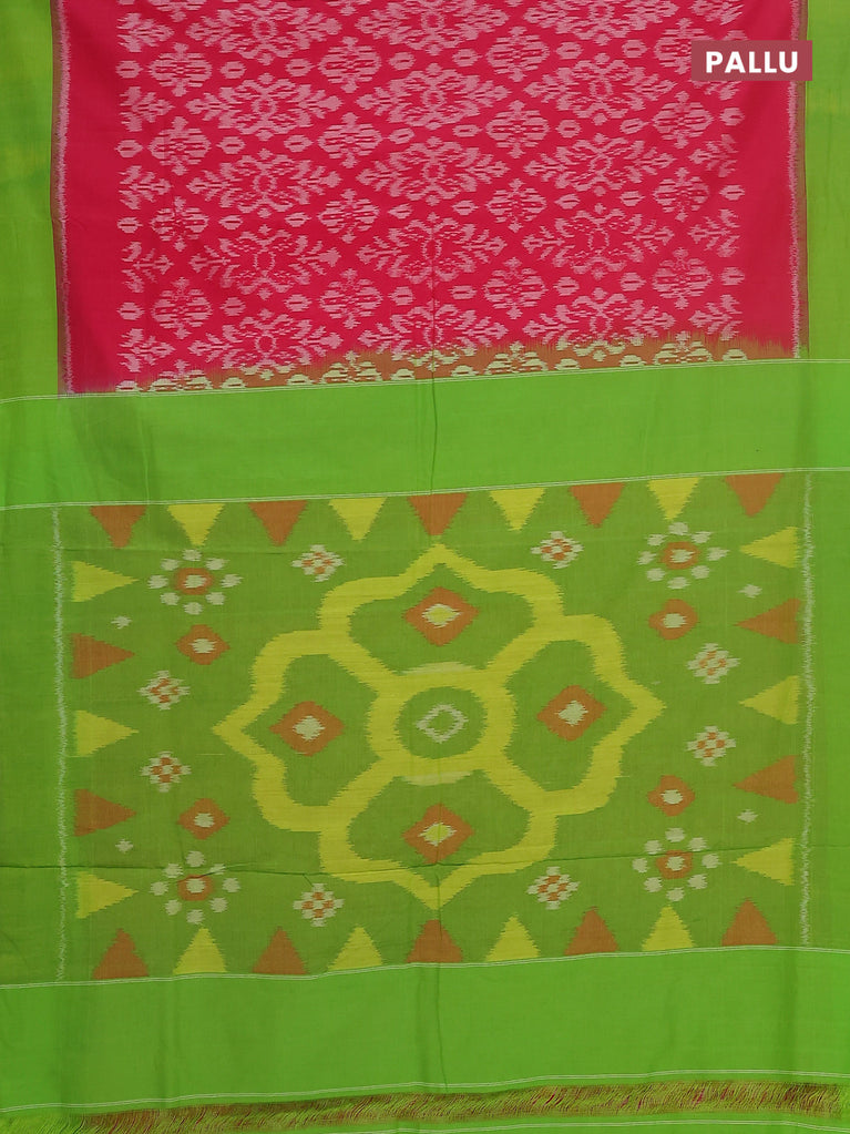 Ikat cotton saree pink and green with allover ikat weaves and simple border