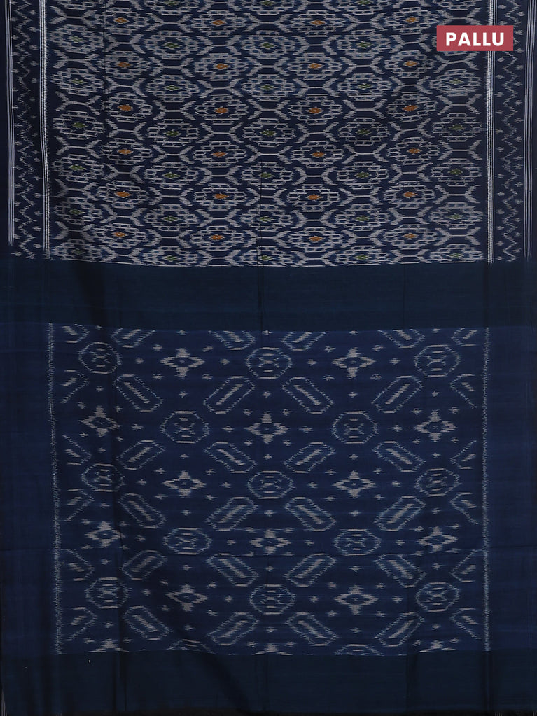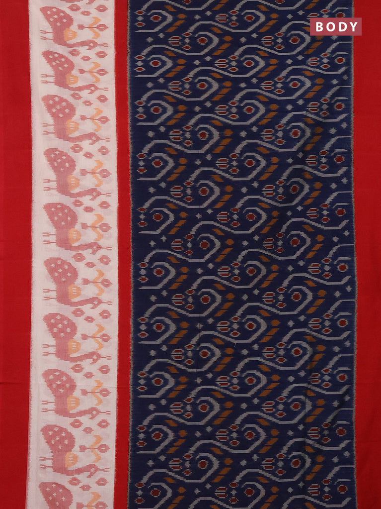 Ikat cotton saree peacock blue and off white red with allover ikat weaves and long ikat border