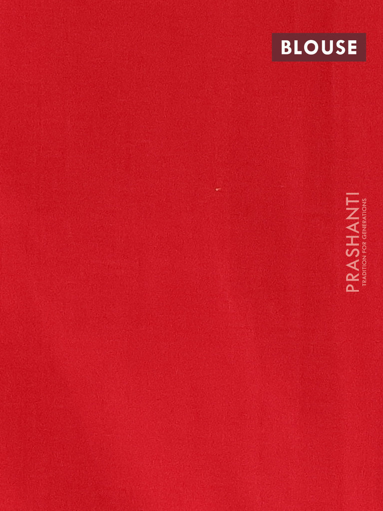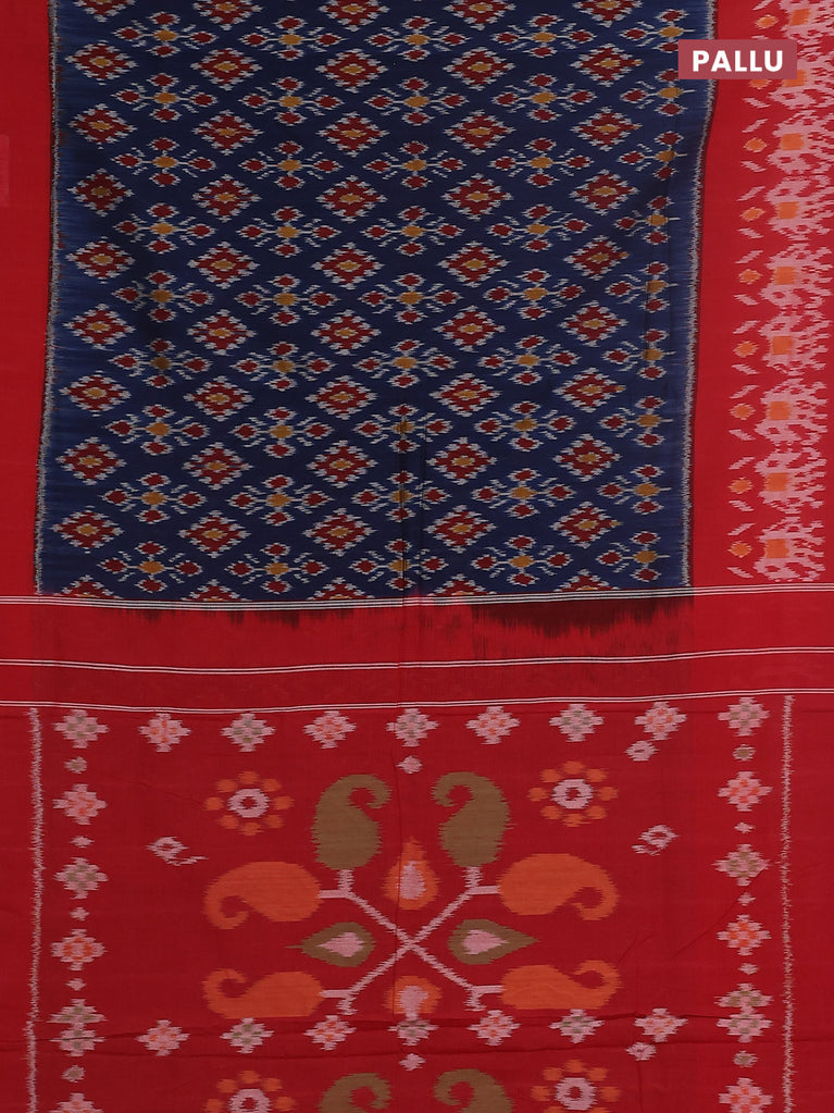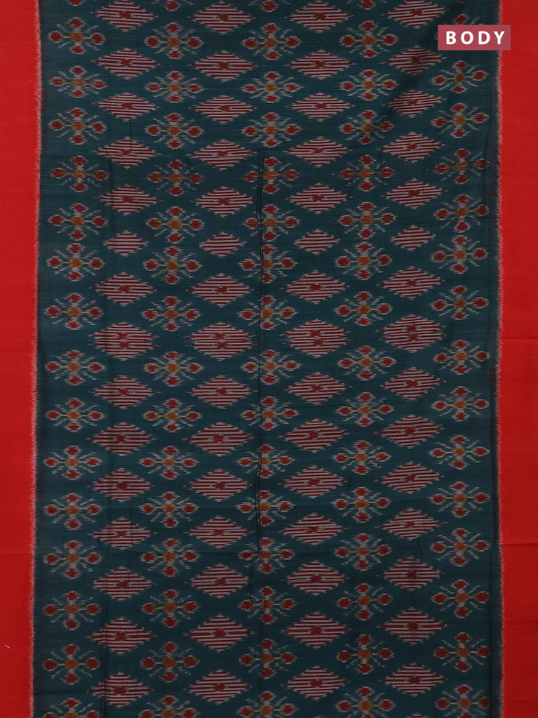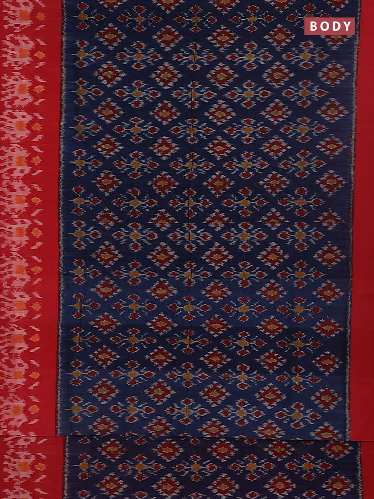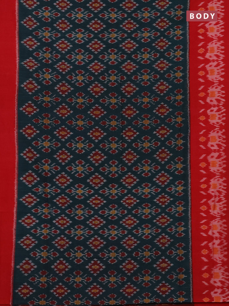 Ikat cotton saree peacock blue and red with allover ikat weaves and simple border