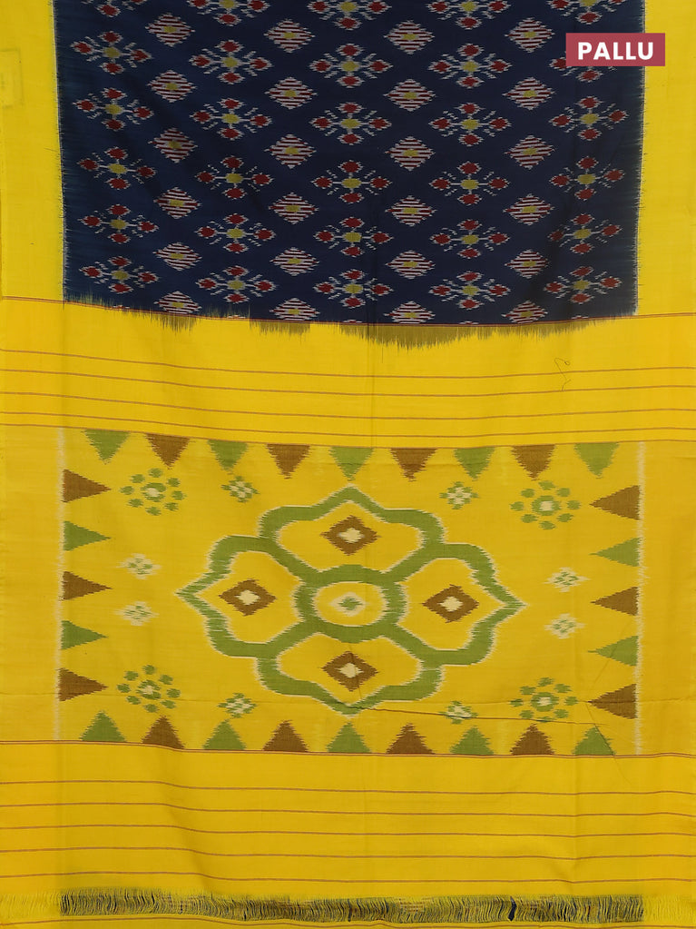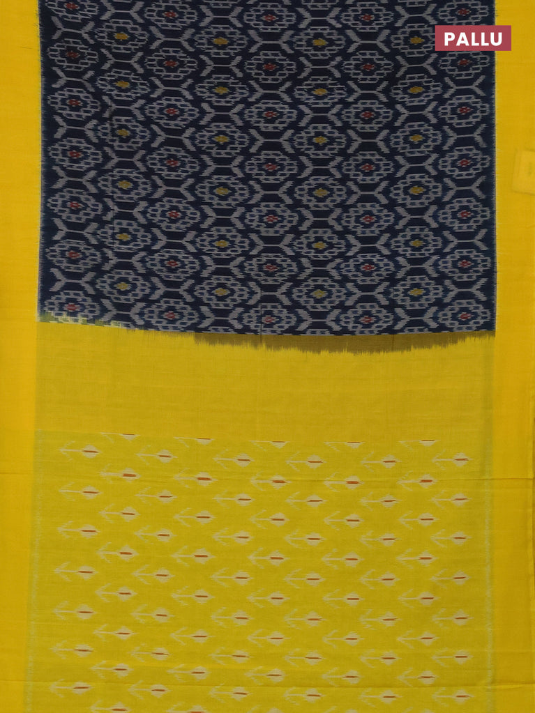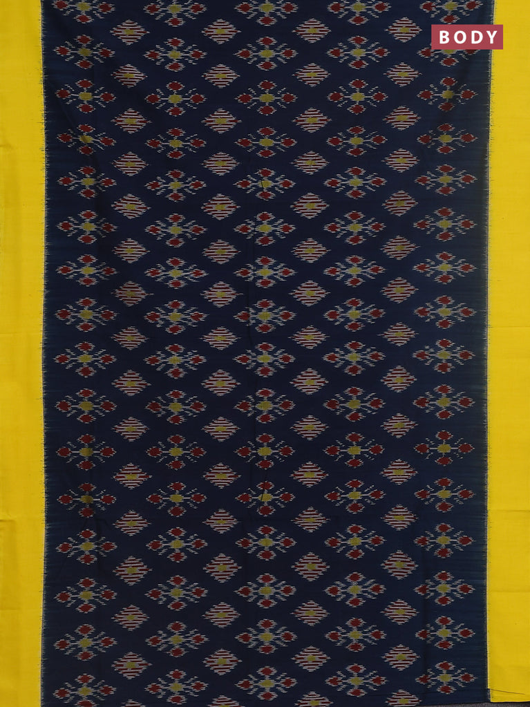 Ikat cotton saree peacock blue and yellow with allover ikat weaves and simple border