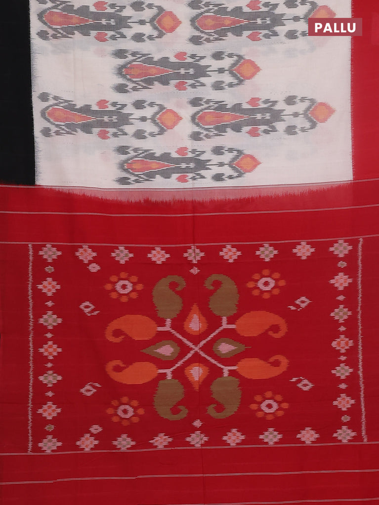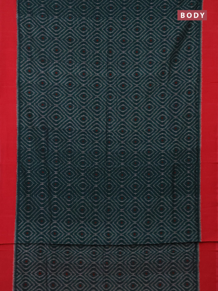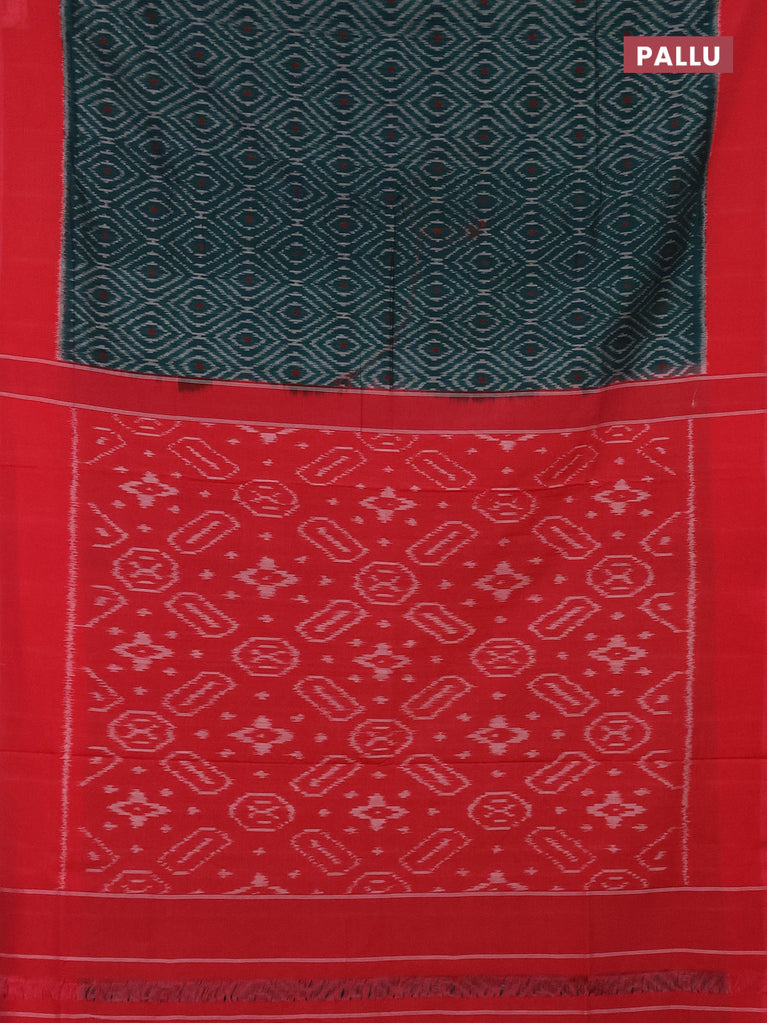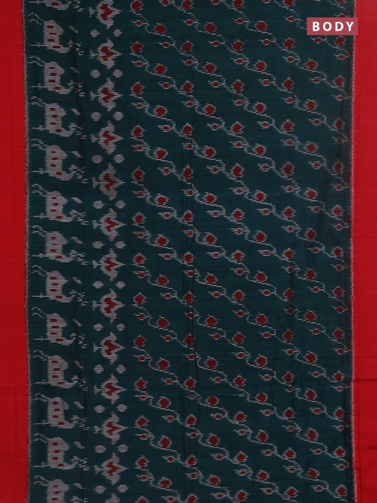 Ikat cotton saree peacock green and red with allover ikat butta weaves and long ikat style border