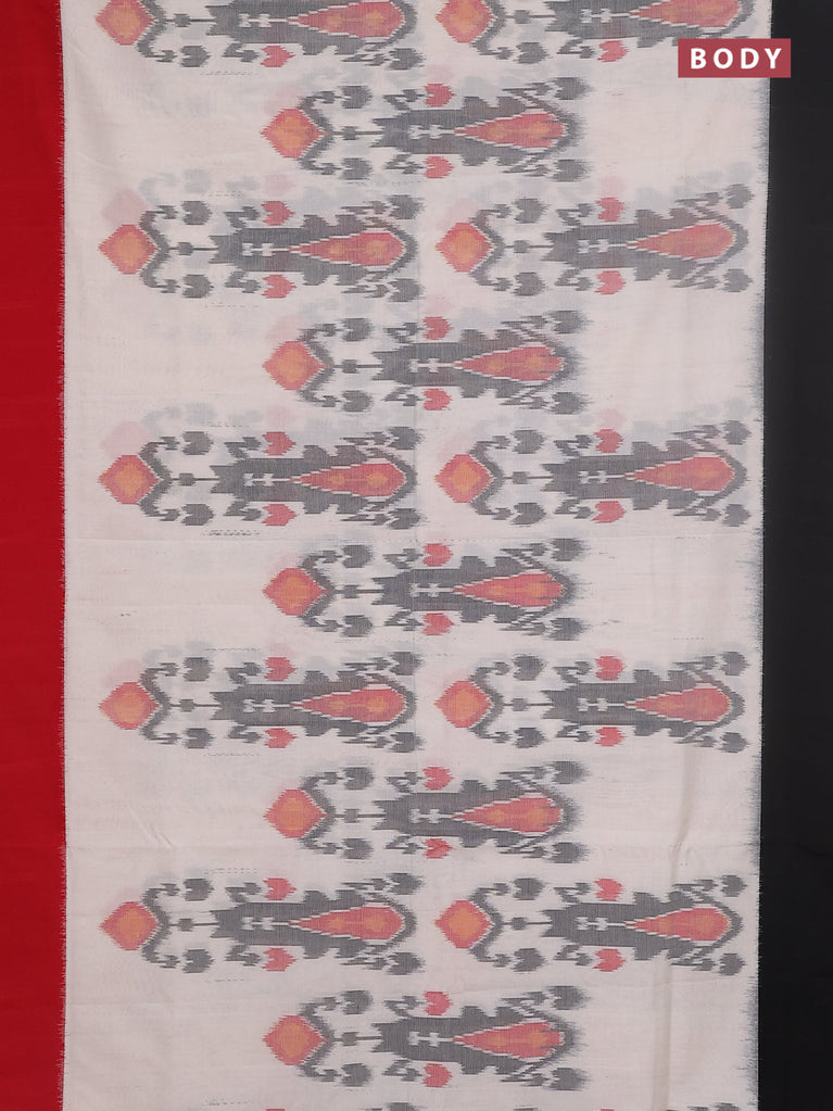 Ikat cotton saree off white with allover ikat weaves and ganga jamuna border
