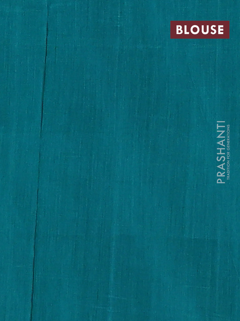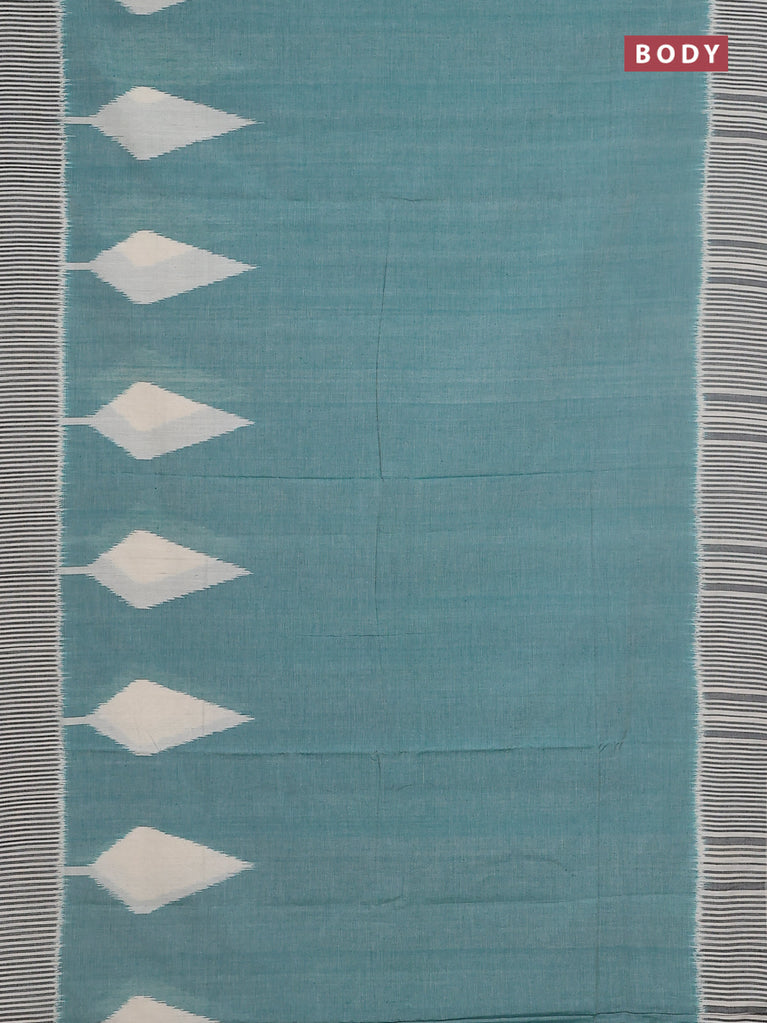 Ikat cotton saree teal green and black with allover ikat weaves and simple border