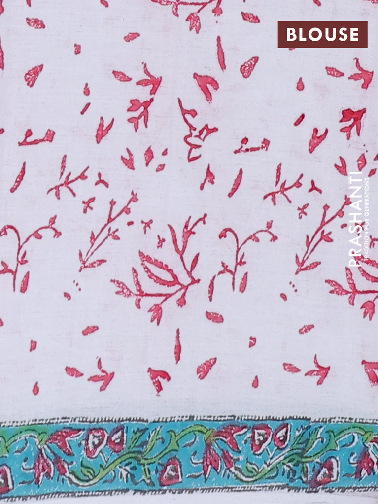 Jaipur cotton saree off white and teal blue with floral butta prints and printed border