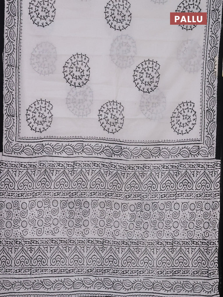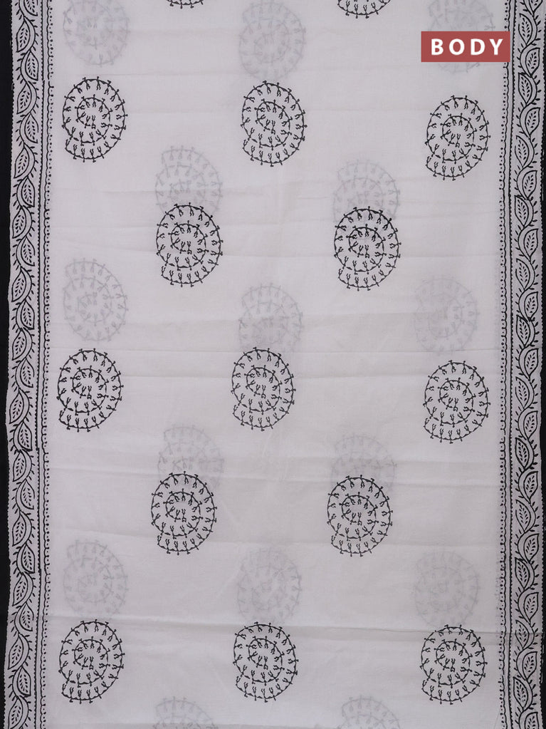 Jaipur cotton saree off white and black with elephant butta prints and printed border