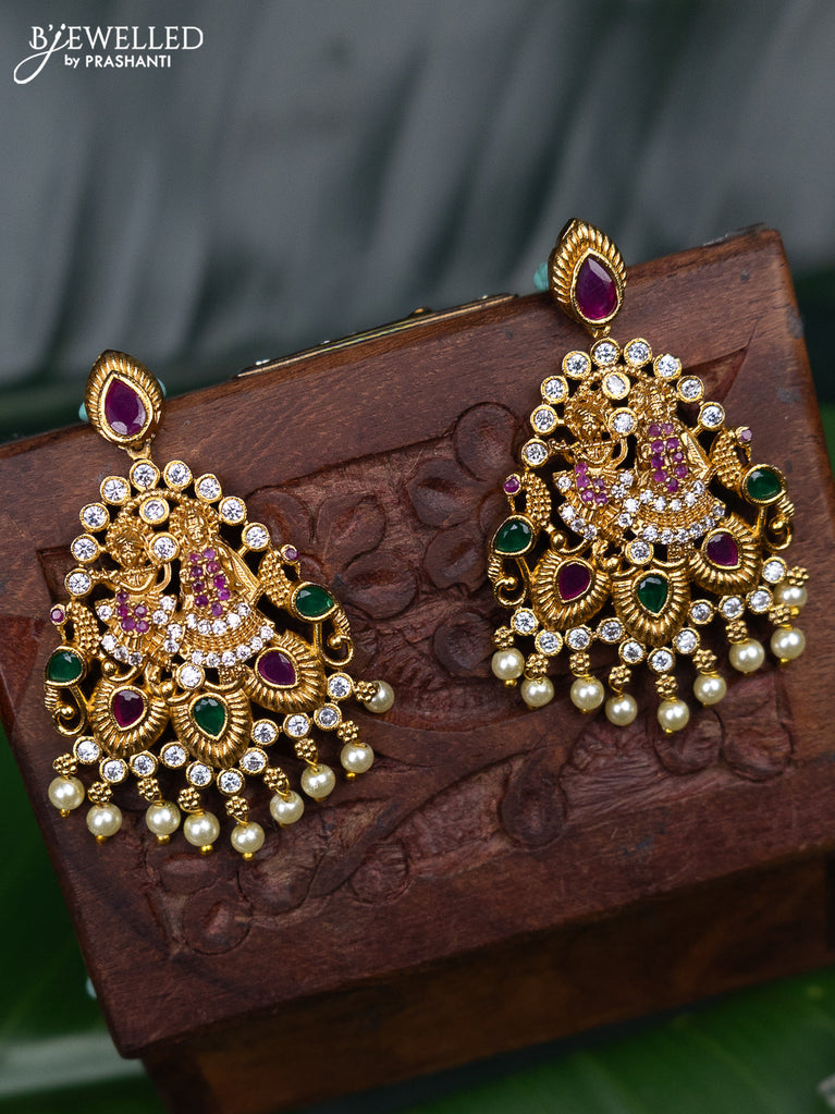 Antique earring radha krishna design with kemp & cz stones and pearl hangings