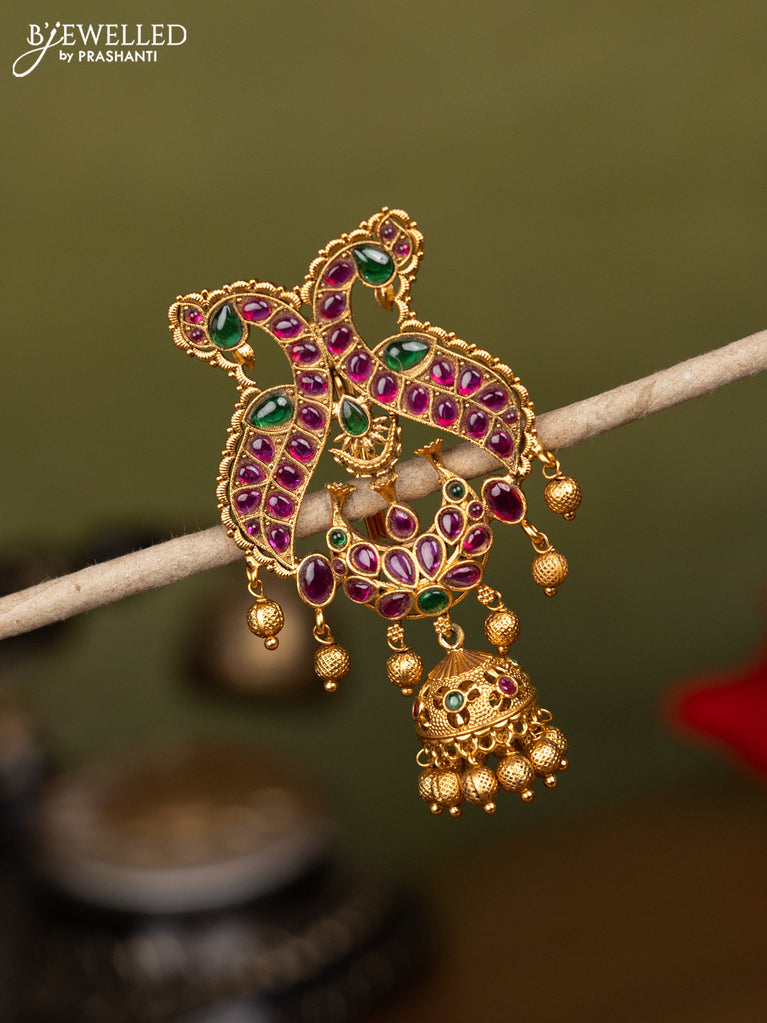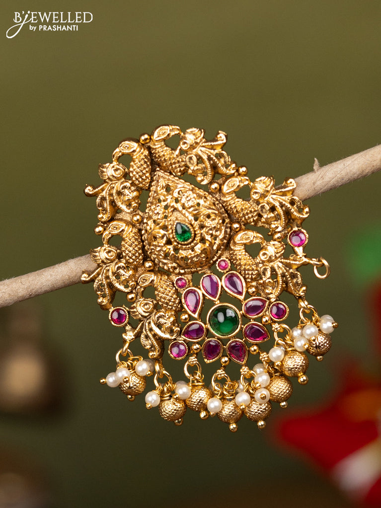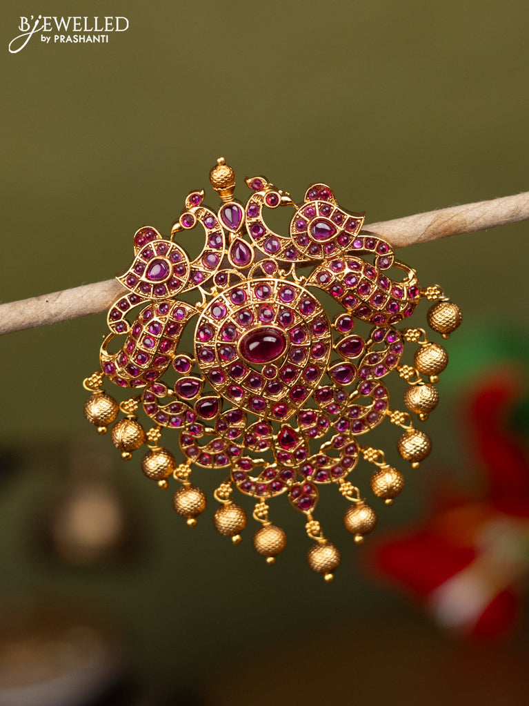 Antique jada billai peacock design with pink kemp stones and golden beads hanging
