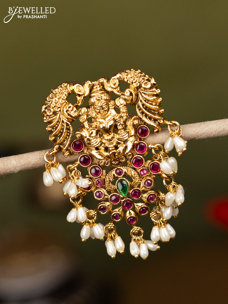 Antique jada billai lakshmi design with pink kemp stones and golden beads hanging