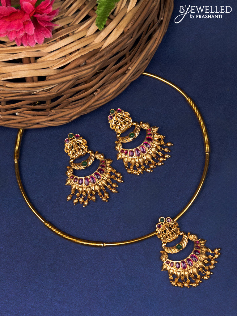 Antique ring type choker lakshmi design with pink kemp and gold beads hangings