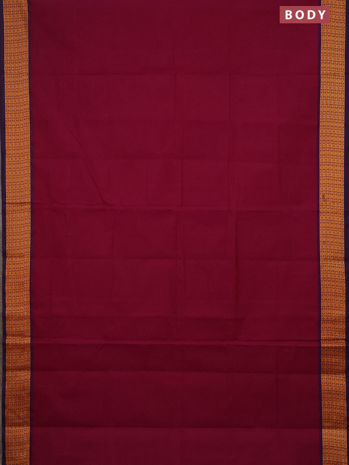 10 Yards chettinad cotton saree dark magenta pink and wine shade with plain body and thread woven border