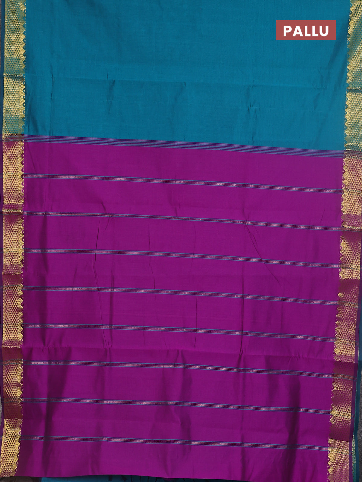 10 yards Poly cotton saree peacock green and purple with plain body and zari woven border
