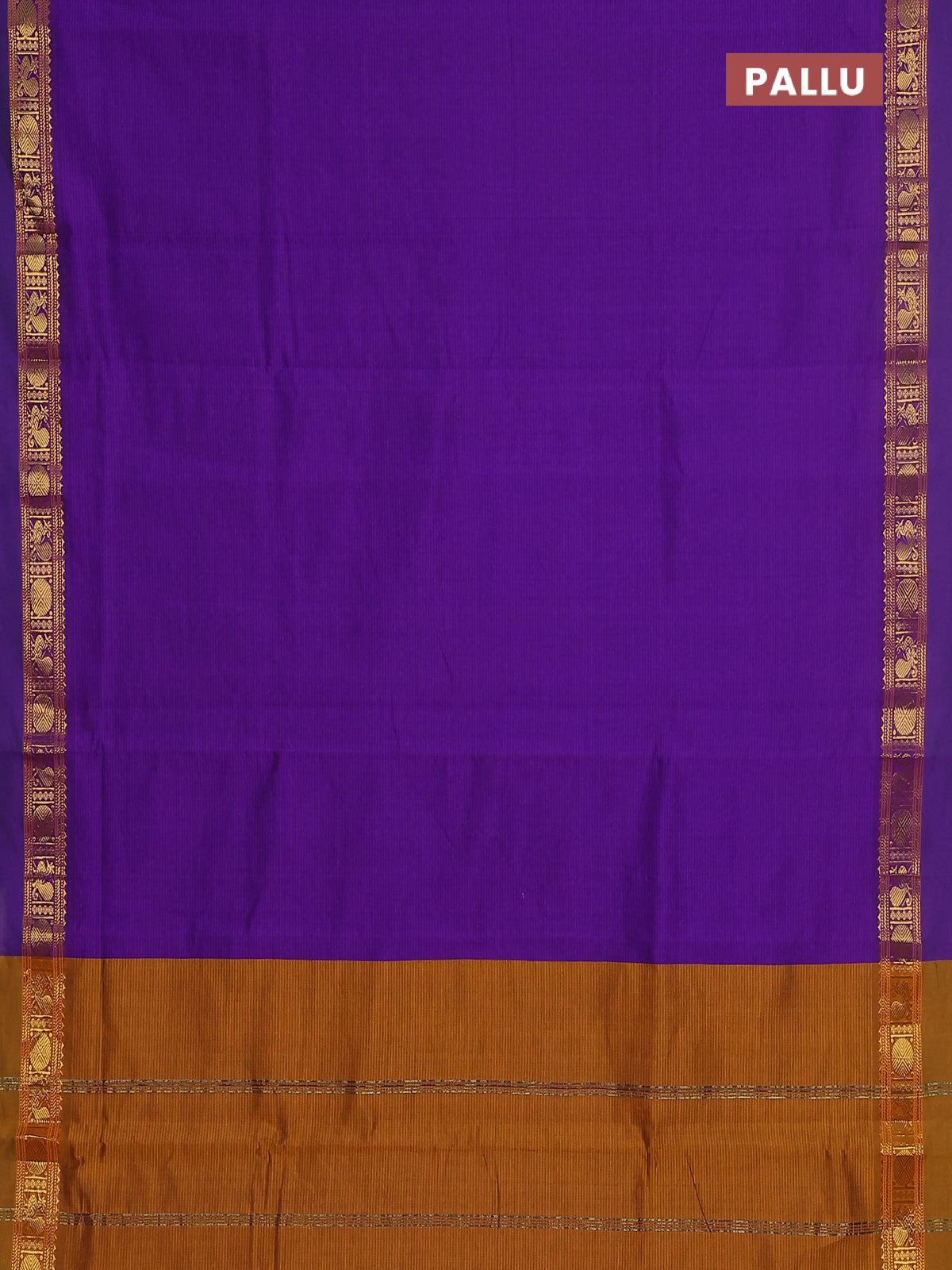 10 yards Poly cotton saree violet and dark mustard with plain body and rettapet zari woven border
