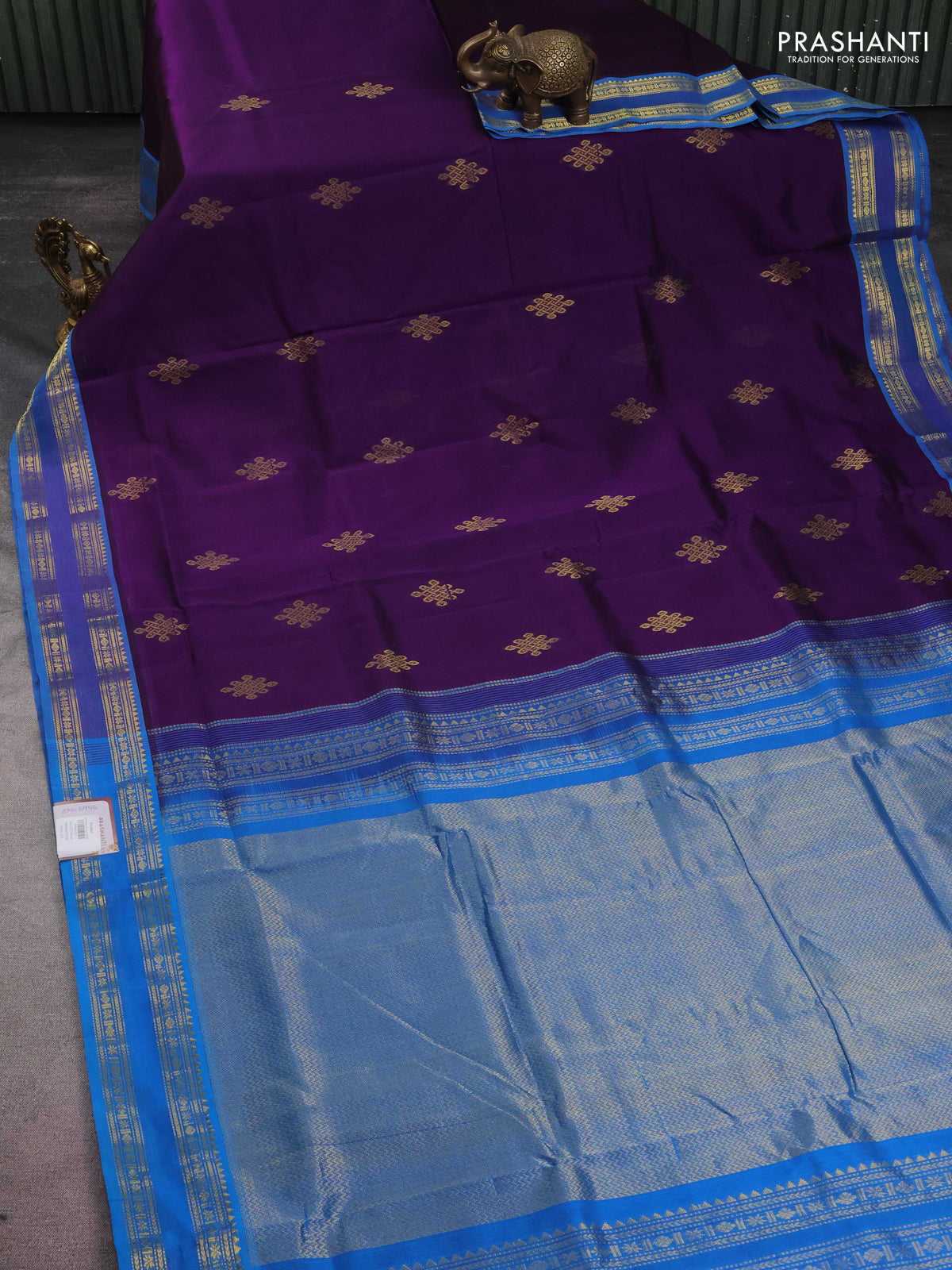 10 yards silk cotton saree violet and cs blue with rangoli design zari buttas and zari woven border