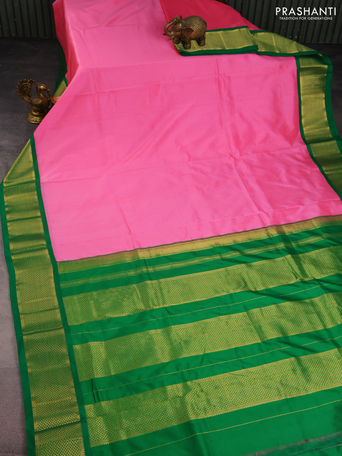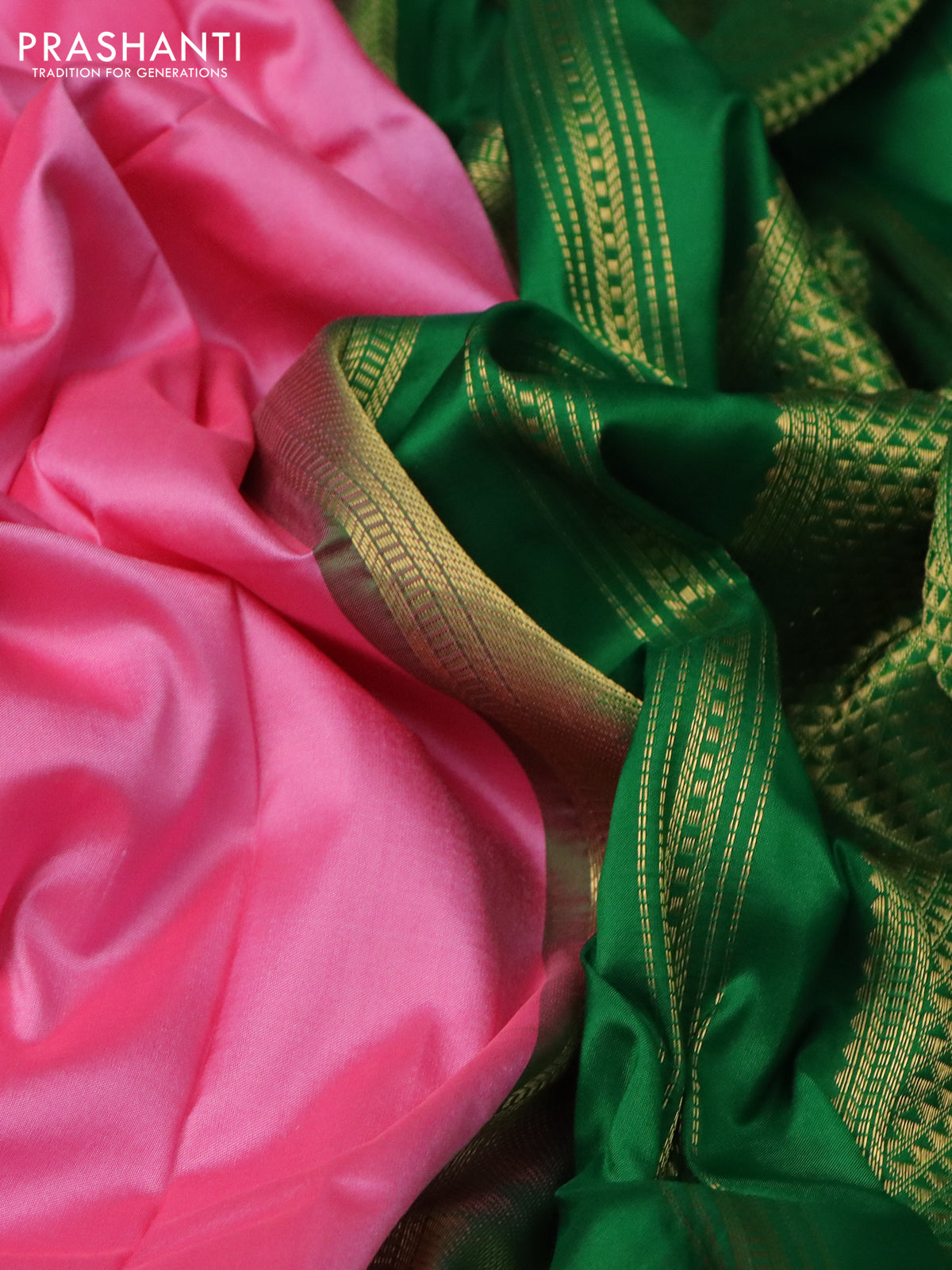 10 Yards silk saree candy pink and green with plain body and zari woven border