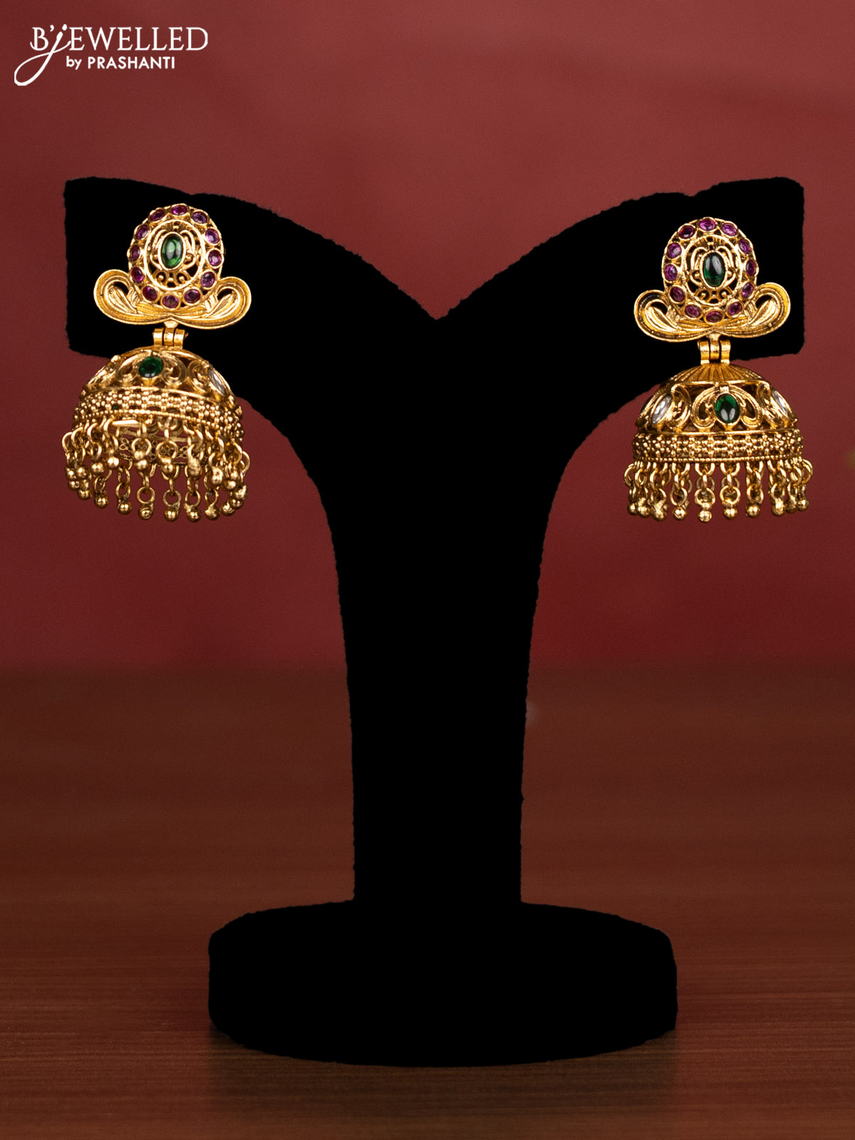 Antique beaded haaram vishnu pendant with kemp & kundan stones and golden beads hanging