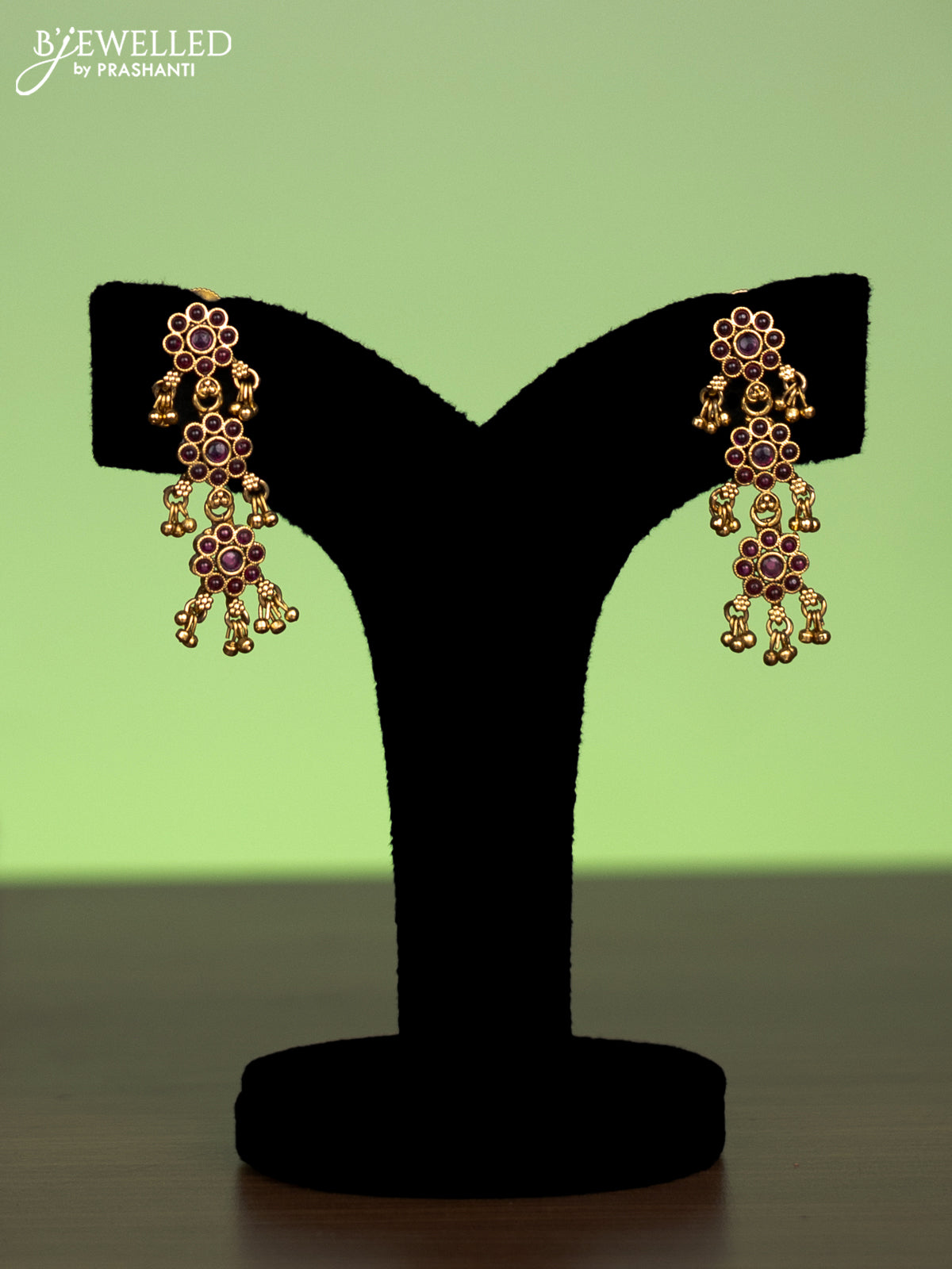Antique mugappu chain floral design with kemp stone and golden beads hangings