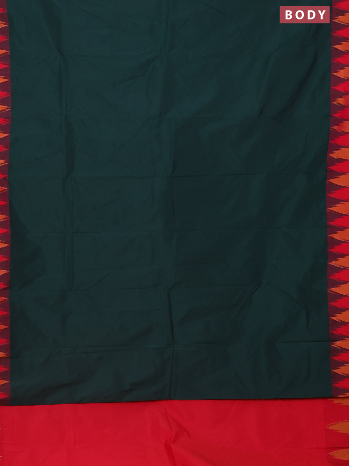 Arani semi silk saree bottle green and pink with plain body and temple design border