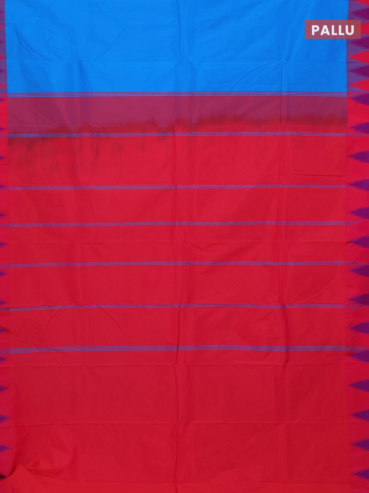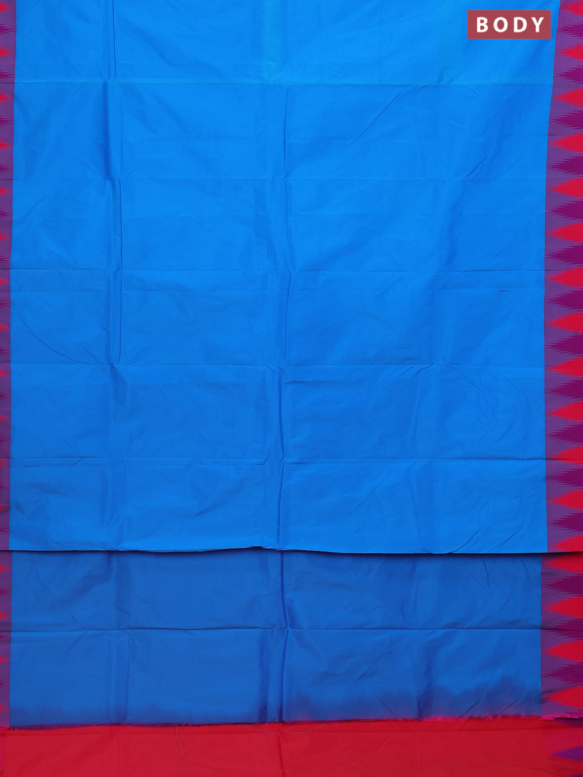Arani semi silk saree cs blue and dual shade of purple with plain body and temple design border