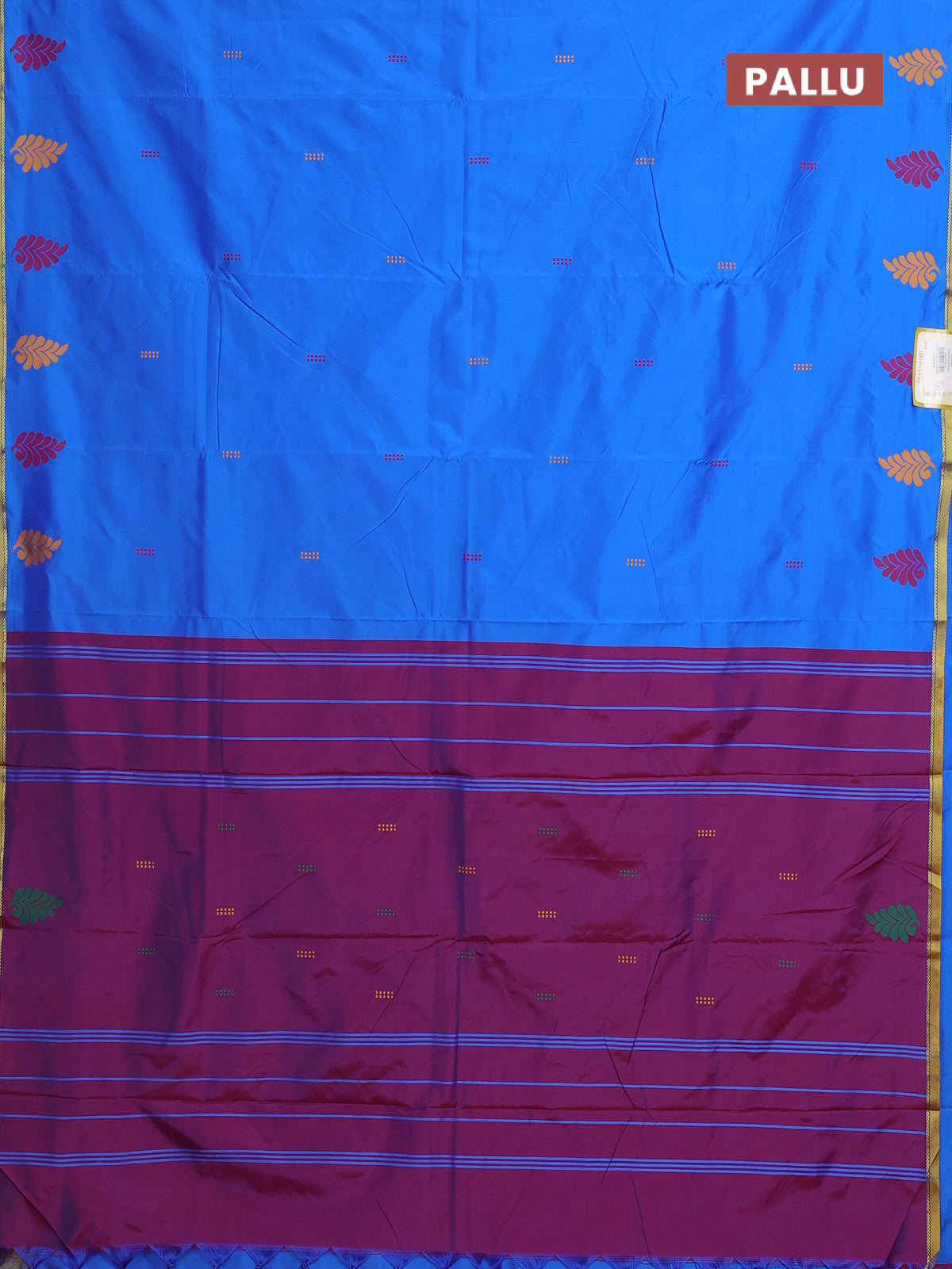 Arani semi silk saree cs blue and purple with thread woven buttas and piping border