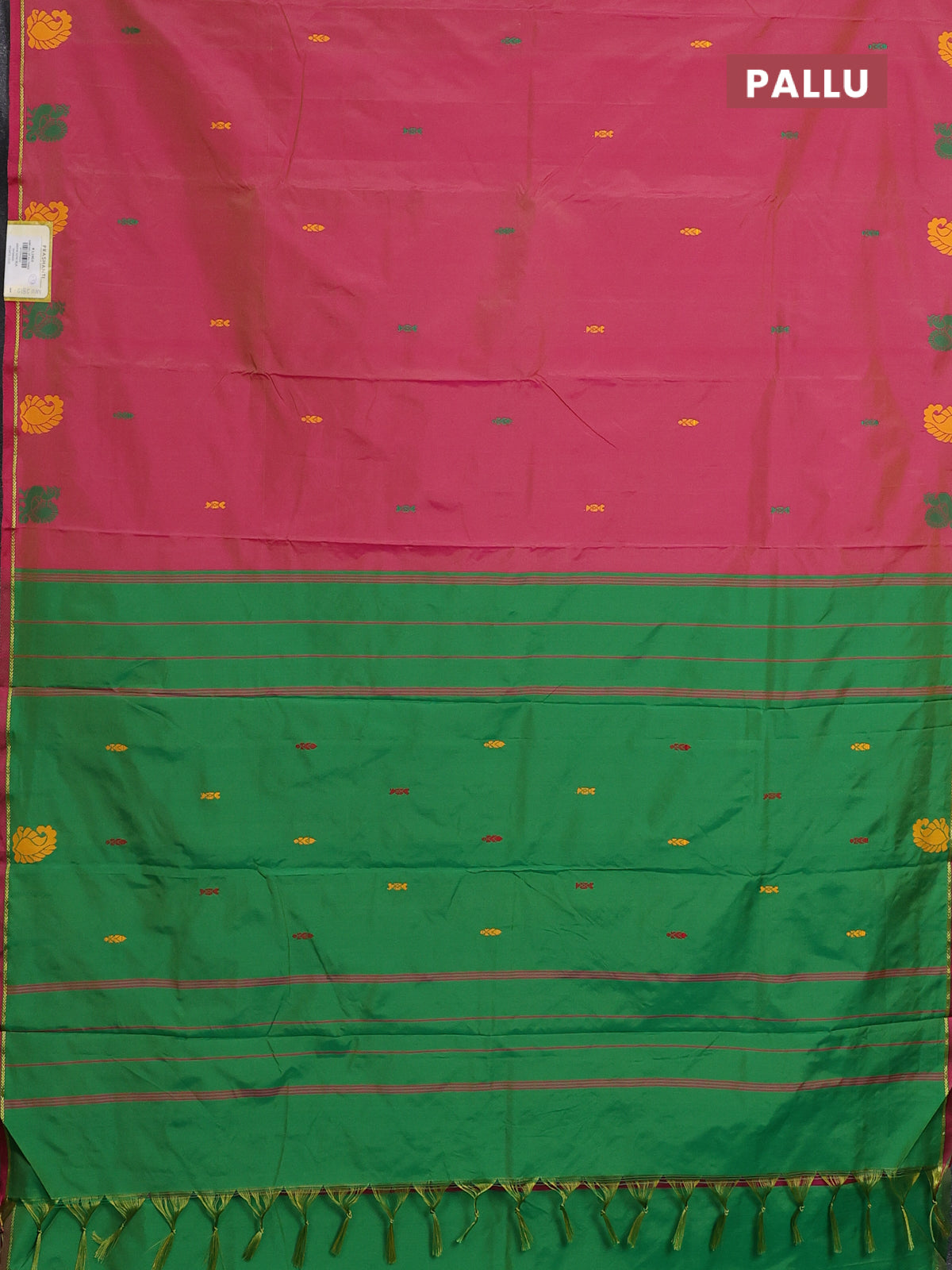 Arani semi silk saree dual shade of pink and green with thread woven buttas and thread woven butta border