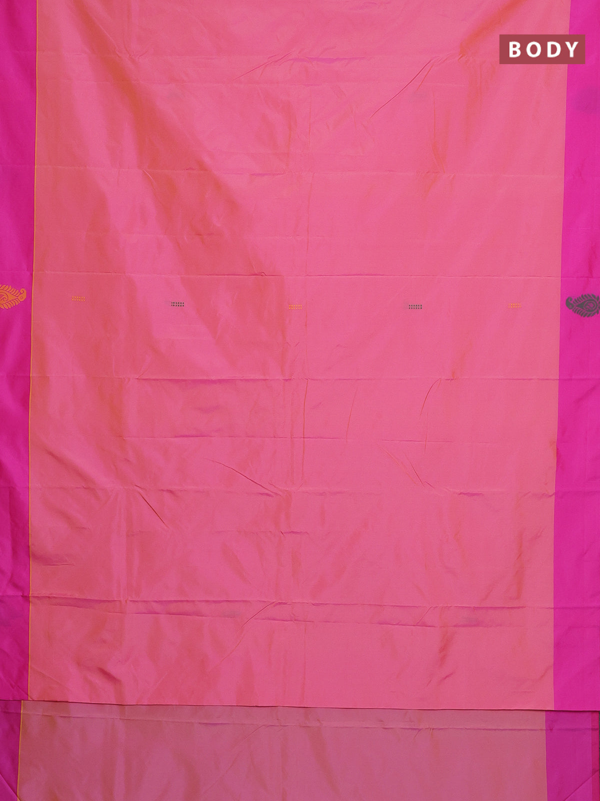 Arani semi silk saree dual shade of pink and green with thread woven buttas and thread woven butta border