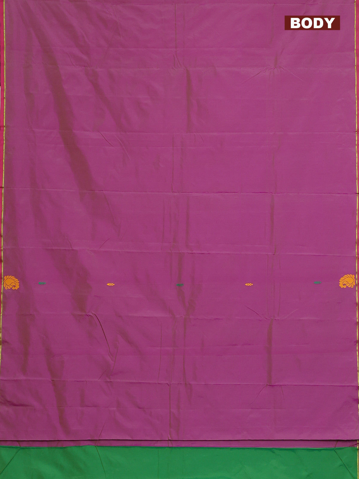 Arani semi silk saree dual shade of purple and green with thread woven buttas and thread woven butta border